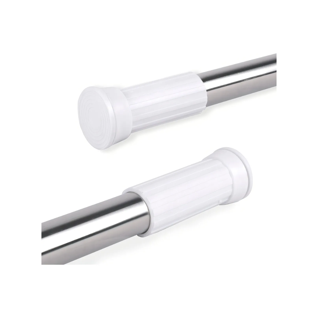 | Características Técnicas | Tipo: Barra extensible para cortina de baño Material: Acero cromado de alta resistencia Sistema de instalación: Ajuste a presión (sin perforaciones) Extensión regulable: De 1,10 m a 2,00 m Diámetro del tubo: 22 mm Acabado: Cromado brillante, resistente a la humedad Aplicaciones: Colocación de cortinas en duchas y bañeras |