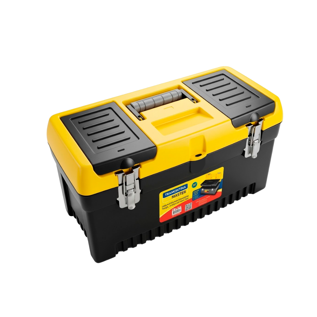 | Características Técnicas | Material del Cuerpo: Polipropileno inyectado de alto impacto, con nervaduras estructurales que aumentan la rigidez. Cierres de Seguridad: Dos cierres metálicos niquelados de accionamiento firme, resistentes al desgaste y a la corrosión. Bandeja Interna: Incluye una bandeja removible con divisiones, ideal para organizar destornilladores, llaves fijas y consumibles pequeños. Seguridad Adicional: Posee un porta-candado integrado en el cuerpo y la tapa para restringir el acceso al contenido. Asa de Transporte: Mango ergonómico de alta carga que facilita el traslado equilibrado de la caja. |