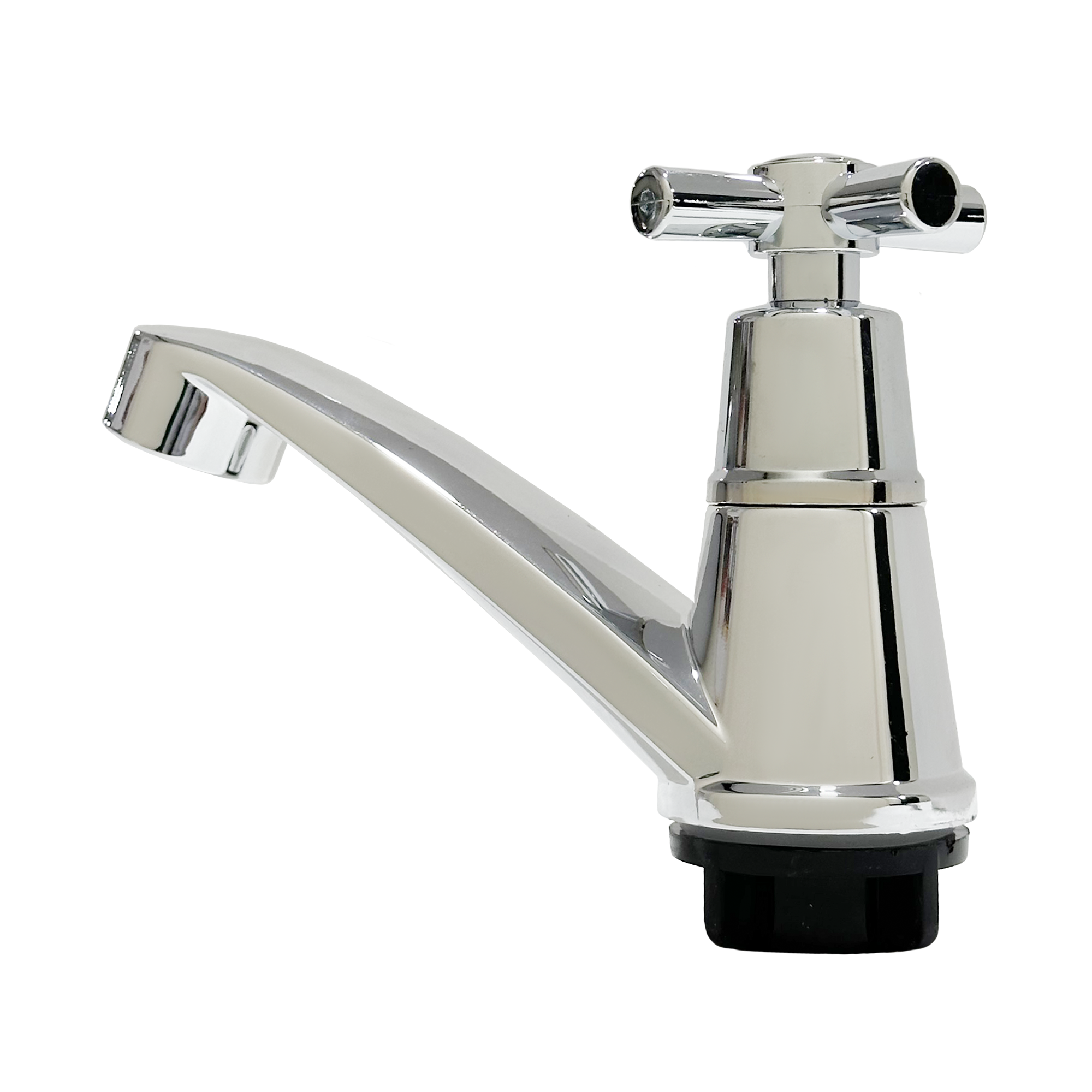 | Características Técnicas | Material: plástico ABS o similar con recubrimiento cromado Acabado: cromado brillante Conexión esperada: 1/2" (rosca estándar de lavatorio) Tipo de instalación: sobre mesa / lavatorio de baño Uso: interior, agua fría Ventajas principales: liviana, bajo costo, fácil mantenimiento |