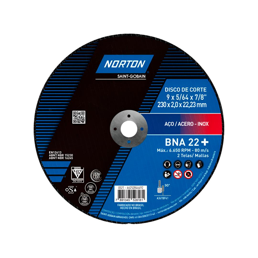 Tus datos cuidados durante toda la compra.El disco Norton BNA 22 es una herramienta abrasiva de alto rendimiento diseñada para cortes rápidos y precisos en metales ferrosos, acero al carbono y sus aleaciones. Su espesor de 2.0 mm ofrece un equilibrio perfecto entre velocidad de corte y estabilidad estructural, reduciendo el desperdicio de material y la generación de rebabas. Es el accesorio ideal para amoladoras angulares de gran porte (9″), muy utilizado en herrería pesada y obras de construcción donde se deben cortar perfiles estructurales, caños o mallas.