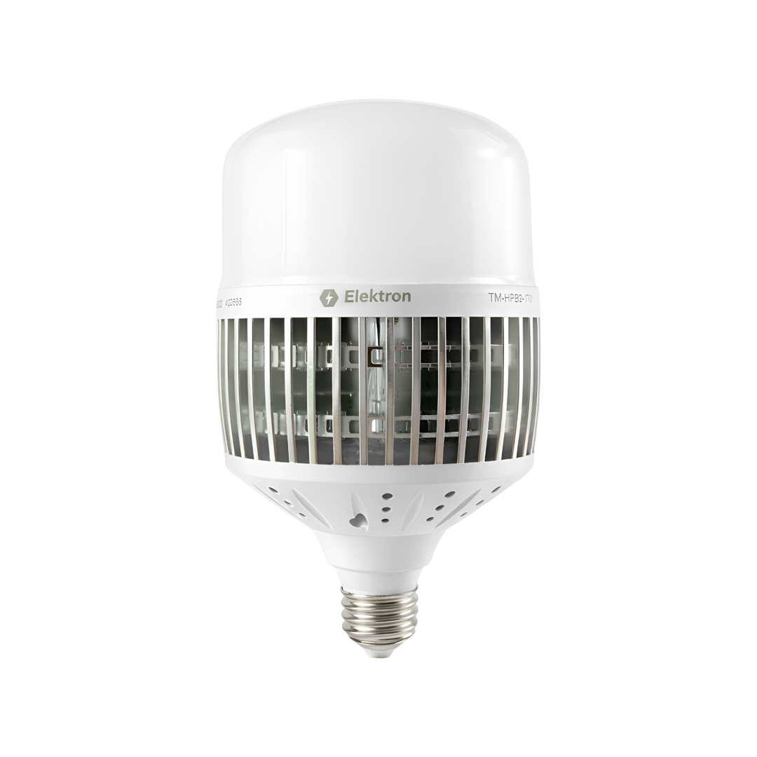 | Características Técnicas | Referencia: 4355 / 8339. Modelo: TM-HPB2-150 EK. Potencia: 100W. Temperatura de Color: 6400K (Luz Blanca Fría / Daylight). Zócalo / Base: E40 (Rosca industrial grande). Tecnología: LED SMD con driver integrado de alta calidad para soportar usos prolongados. Tensión de Operación: 100-240V AC (Rango amplio que protege contra fluctuaciones de voltaje). Flujo Luminoso: Aproximadamente 9,000 a 10,000 lúmenes. Vida útil: Hasta 25,000 horas. Cuerpo: Fabricado con polímero de alta resistencia y disipador de calor interno de aluminio. |
