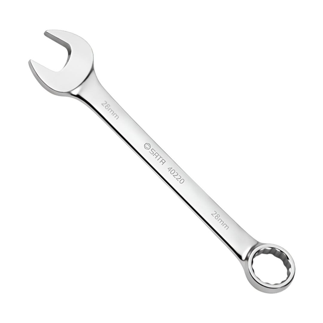 | Características Técnicas | Marca: SATA Referencia/Modelo: 800889 Tipo: Llave combinada (Boca y Corona). Medida: 28 mm. Material: Aleación de acero de Cromo-Vanadio (Cr-V) forjado de alto rendimiento, que garantiza una resistencia estructural superior ante la fatiga. Acabado: Pulido espejo (Chrome Finish) de alta calidad, resistente a la oxidación y fácil de limpiar tras el contacto con lubricantes. Tecnología Surface Drive®: La boca de corona está diseñada para aplicar fuerza sobre las caras planas de los pernos, evitando el redondeo de las esquinas y permitiendo una transmisión de potencia un 25% más eficiente. |