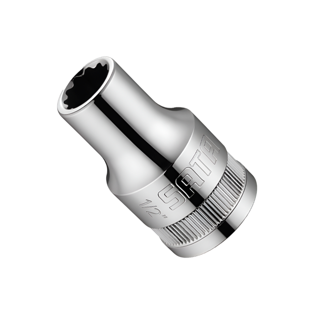 | Características Técnicas | Marca: SATA Tipo: Dado corto (Standard Socket) de 12 puntas. Medida de la boca: 1/2" (Pulgadas/Fraccional). Medida de encastre (Mando): 1/2" (Cuadrante estándar). Material: Fabricado en acero de aleación de Cromo-Vanadio (Cr-V) forjado, tratado térmicamente para una dureza estructural óptima. Acabado: Cromado pulido espejo de alta calidad que previene la oxidación y permite una limpieza rápida de grasas y lubricantes. Tecnología Surface Drive®: Diseño especial en las paredes de la boca que empuja los planos de la tuerca en lugar de las esquinas, reduciendo el redondeo de los pernos y permitiendo aplicar mayor torque. |