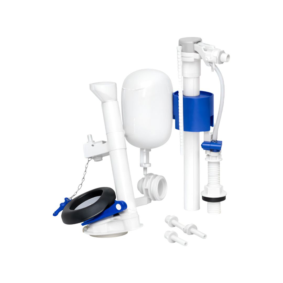 | Características Técnicas | Marca: Astra. Referencia: MU/S 3862. Tipo de accionamiento: Superior (Botón superior). Compatibilidad: Universal para cisternas de embutir o de apoyo (mochilas bajas). Material: Polímeros de alta ingeniería (plásticos técnicos), acero inoxidable y sellos de silicona. Componentes del kit: Torre de entrada de agua (Llenado silencioso). Torre de salida de agua (Descarga). Botón de accionamiento superior cromado. Kit de fijación y obturador. Regulación: Altura ajustable para adaptarse a diferentes tamaños de depósito. |