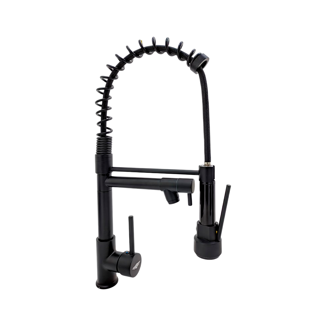 Tus datos cuidados durante toda la compra.El monocomando de mesa Forny Modelo 5015-N es una pieza de diseño contemporáneo diseñada para cocinas modernas y funcionales. Su acabado en negro mate ofrece un aspecto industrial y sofisticado que no deja marcas de agua con la misma facilidad que el cromo. Cuenta con un brazo móvil (pico giratorio) que permite un alcance total de la bacha, facilitando las tareas de limpieza y llenado de recipientes grandes.
