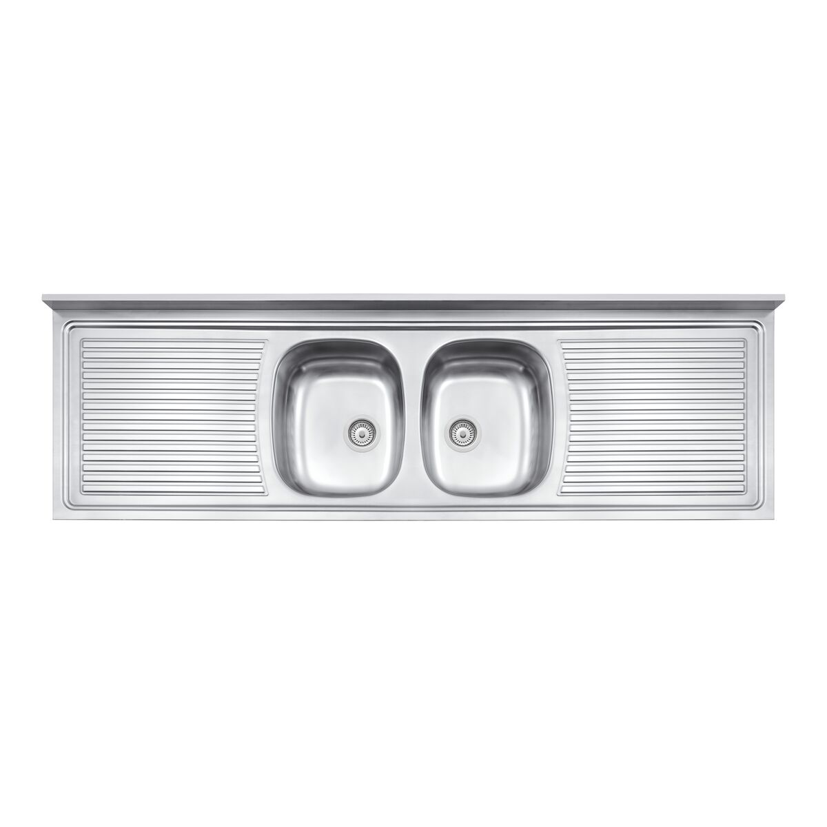 | Características Técnicas | Material: Acero inoxidable Acabado: Pre-pulido, que proporciona resistencia a la corrosión y facilita la limpieza. Configuración: Dos cubetas centrales con escurridor lateral. Instalación: Sobreponer (encimera). Accesorios incluidos: Válvula de 4 1/2" con rebosadero. Diseño: Monobloc sin soldaduras, evitando puntos de corrosión y acumulación de residuos. Escurridor: Con ligera inclinación hacia las bachas para facilitar el drenaje del agua. |