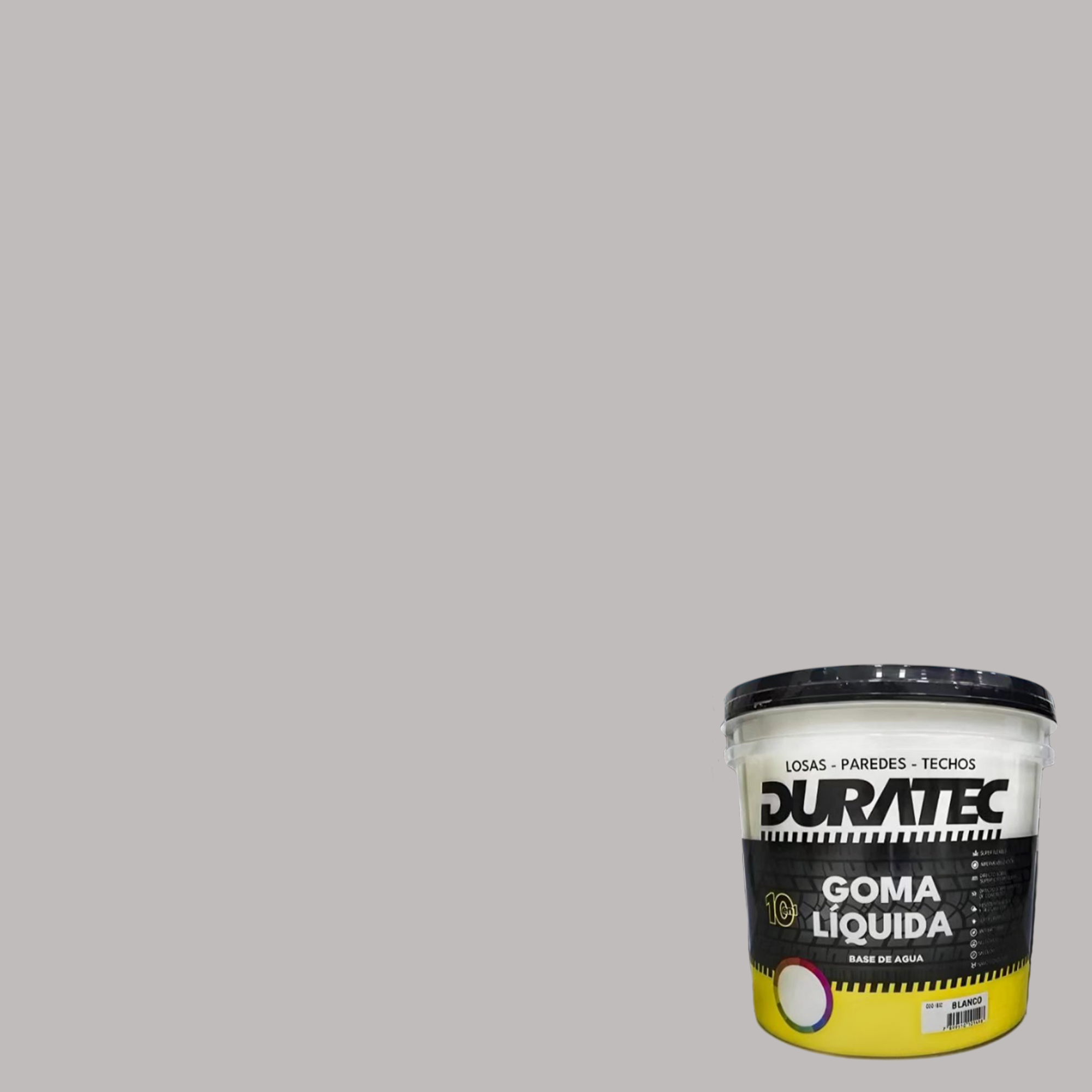 | Características Técnicas | Marca: Duratec. Tipo: Pintura engomada impermeabilizante. Uso: Losa, terraza, cubiertas y muros expuestos. Alta penetración en grietas y fisuras. Evita filtraciones y humedades. Gran elasticidad y adherencia. Resistente a rayos UV y cambios climáticos. Rendimiento: 50 a 60 m² por mano (aprox., según superficie). Secado al tacto: 1 hora. Repintado: 4 a 6 horas. Curado total: 48 horas. |