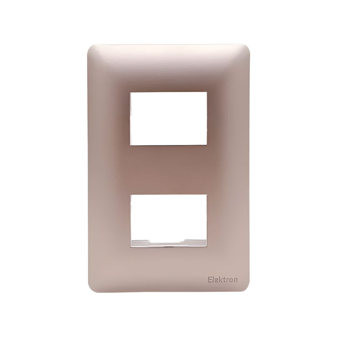 Tus datos cuidados durante toda la compra.Esta placa de la línea Alpes Curve de Elektron combina un diseño de líneas suaves y bordes redondeados con una estética bicolor de alta gama. El marco presenta un acabado Champagne metalizado, mientras que los dos interruptores de 24 mm resaltan en color Negro. Al utilizar módulos de 24 mm, las teclas ofrecen una superficie de contacto más amplia y cómoda. La disposición «separada» de los puntos permite una gestión de la iluminación más clara y ergonómica, siendo una pieza ideal para proyectos residenciales y comerciales que buscan sofisticación y un toque de modernidad orgánica.