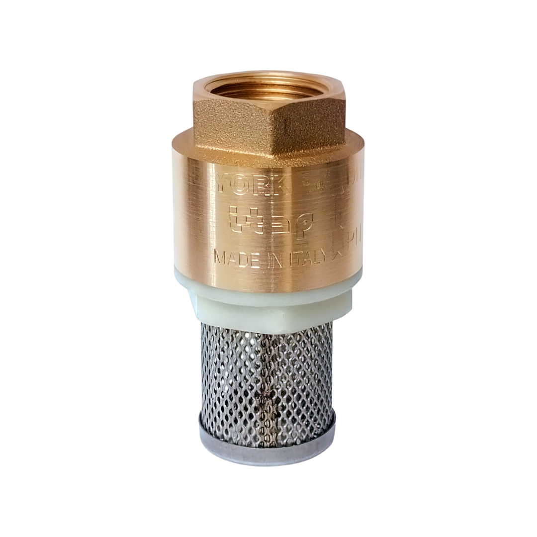 | Características Técnicas | Marca: Valco. Material del Cuerpo: Latón forjado de alta resistencia, apto para contacto continuo con agua. Material del Filtro: Malla de acero inoxidable reforzada con base metálica. Tipo de Cierre: Obturador central guiado con sello de goma (NBR) de alta estanqueidad. Tipo de Rosca: 1 1/4". Posición de Trabajo: Vertical (preferentemente) para asegurar el cierre por gravedad y resorte. Aplicaciones: Aspiración de pozos profundos, sistemas de riego agrícola, equipos contra incendios y abastecimiento de agua en edificios. |